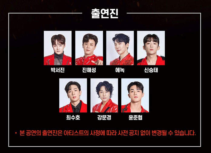 참고: 공연 출연진은 기획사 사정에 따라 변경될 수 있습니다. 예매 페이지에서 최신 출연진 라인업을 확인 후 예매하시기 바랍니다.