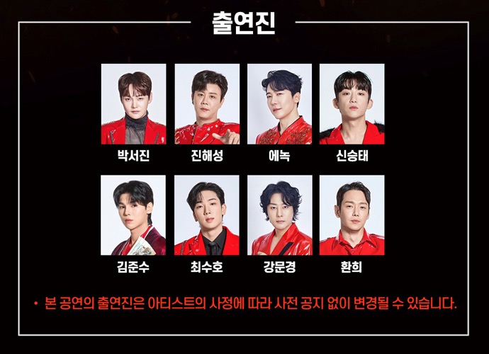 참고: 공연 출연진은 기획사 사정에 따라 변경될 수 있습니다. 예매 페이지에서 최신 출연진 라인업을 확인 후 예매하시기 바랍니다.